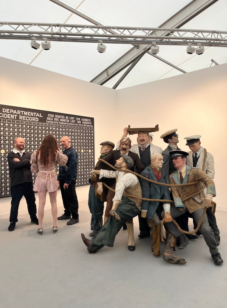 This year, it felt like the scale-to-impact ratio had flipped: the tiny gallery, Ginny on Frederick, founded by Freddie Powell (Ginny is his mum’s name), is having a moment that far exceeds its floor plan. At the fair, he’s showing artist, Alex Margo Arden, the standout star of Frieze Week.Her installation, Accounts (2025) is a brace of mannequins from the National Motor Museum, plucked from jobs pedalling an ice cream truck or delivering milk, and bound together by rope in a chaotic tableau of redundant industry. The work has been acquired by the Arts Council Collection and she also won the inaugural Nicoletta Fiorucci Foundation Prize.